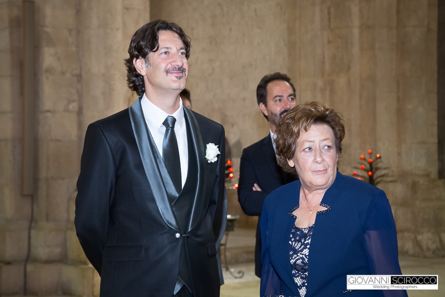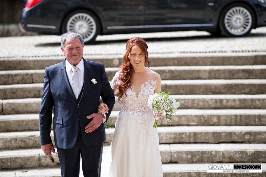 Sulle note dell’arpa e violino la futura Sposa è entrata a braccetto del padre, l’hanno preceduta la figlia ed il nipotino,